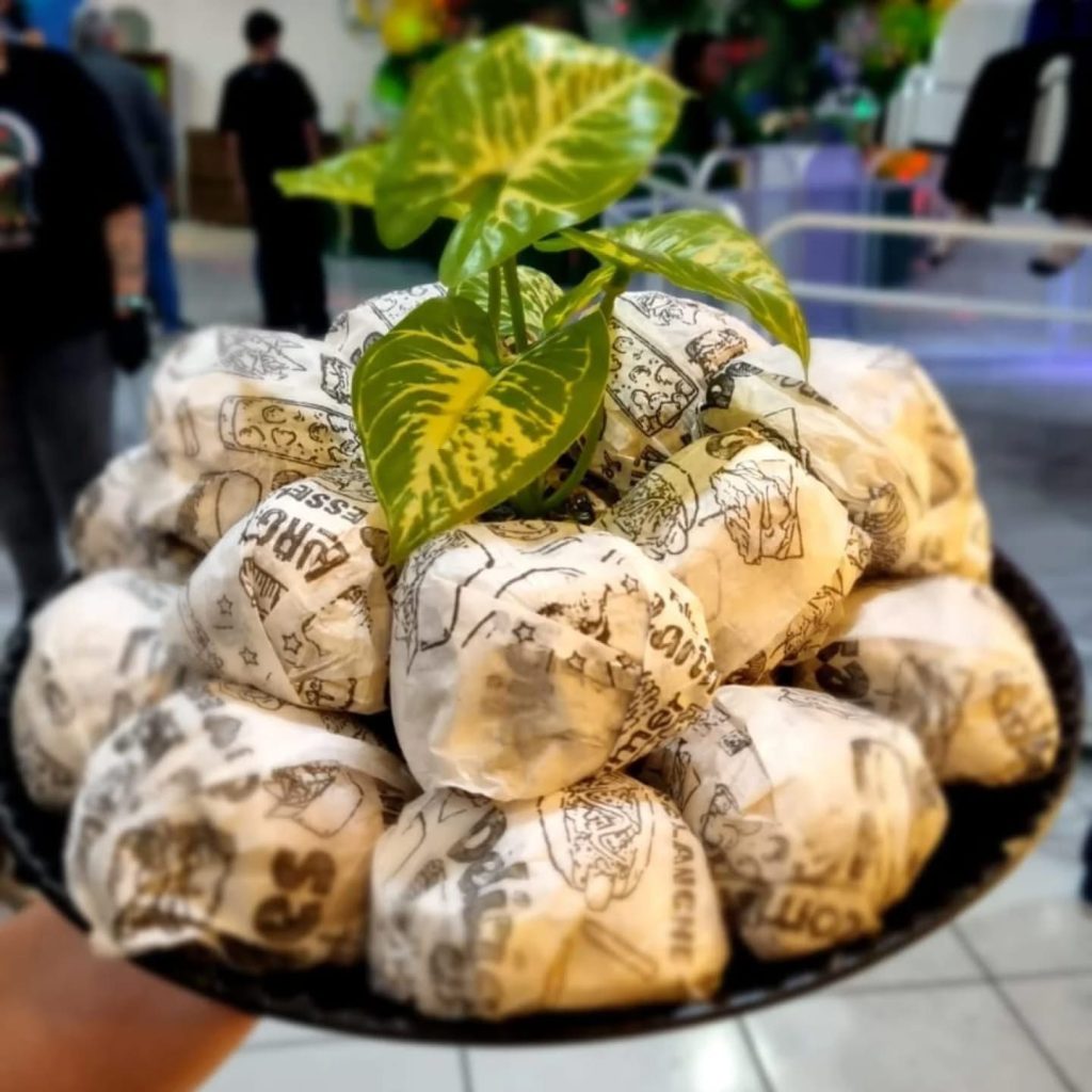 Todos comem à vontade enquanto a festa segue leve e bem organizada.